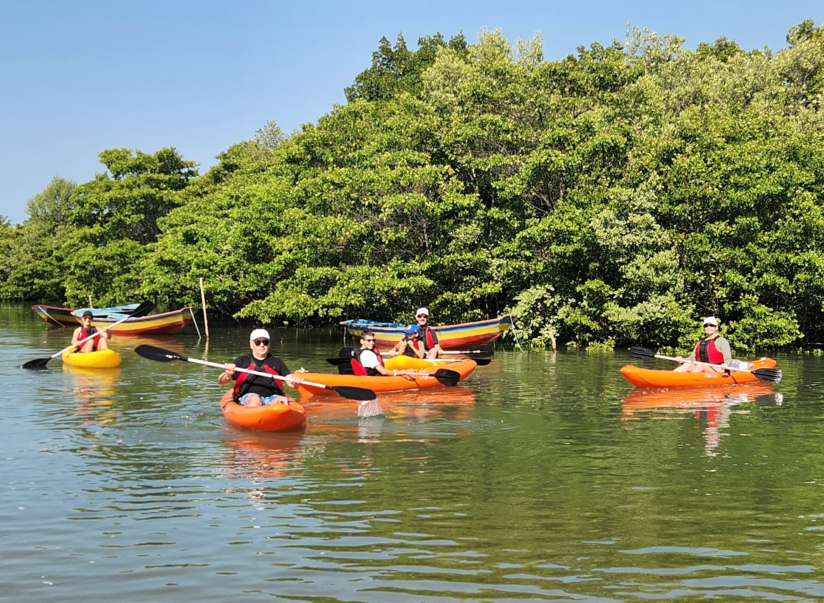 Sairemos em charrete do hotel ao ponto de saída do passeio, onde iniciaremos uma remada em caiaque pelo Rio Camurupim. Realizaremos uma remada com duração de 1h aproximadamente, no qual poderemos fazer parada para banho, fotos e observação da fauna e flora local, ecossistema de mangue e possibilidade de avistar animais como aves, peixes e crustáceos. Ao final do passeio, haverá degustação de iguarias regionais, com uma tábua com frios, frutas, castanhas de caju, cajuína, além de um brinde com espumante. Para finalizar o passeio, o cliente pode retornar para a pousada em charrete ou por meio de caminhada.
